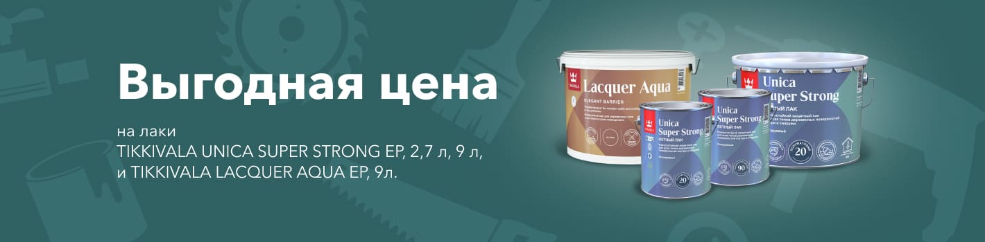 Выгодная цена на лаки TIKKIVALA UNICA SUPER STRONG EP, 2,7 л и 9 л, а также на TIKKIVALA LACQUER AQUA EP, 9л.