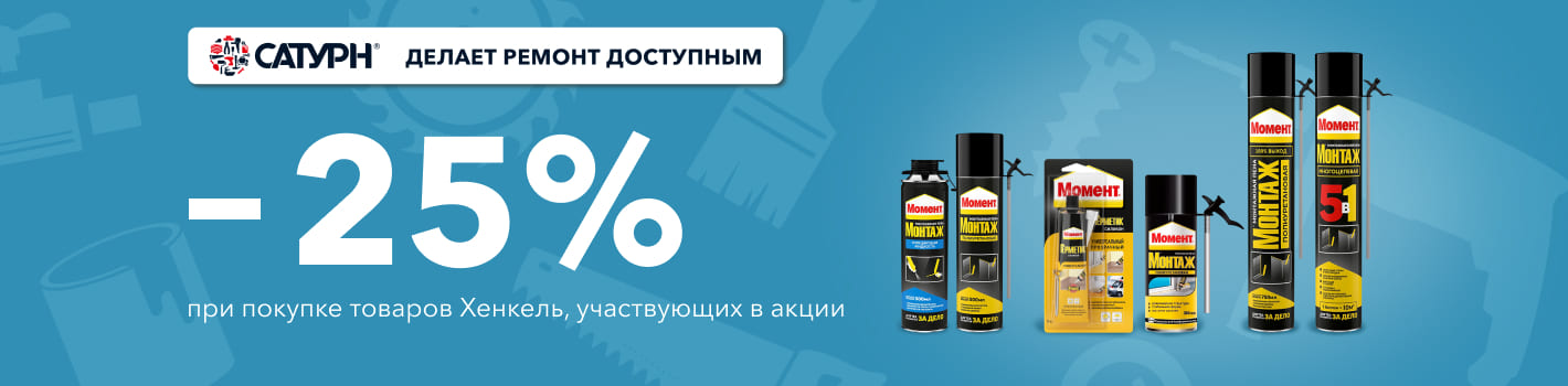При покупке товаров Хенкель, участвующих в акции, Вам предоставляется скидка 25%!