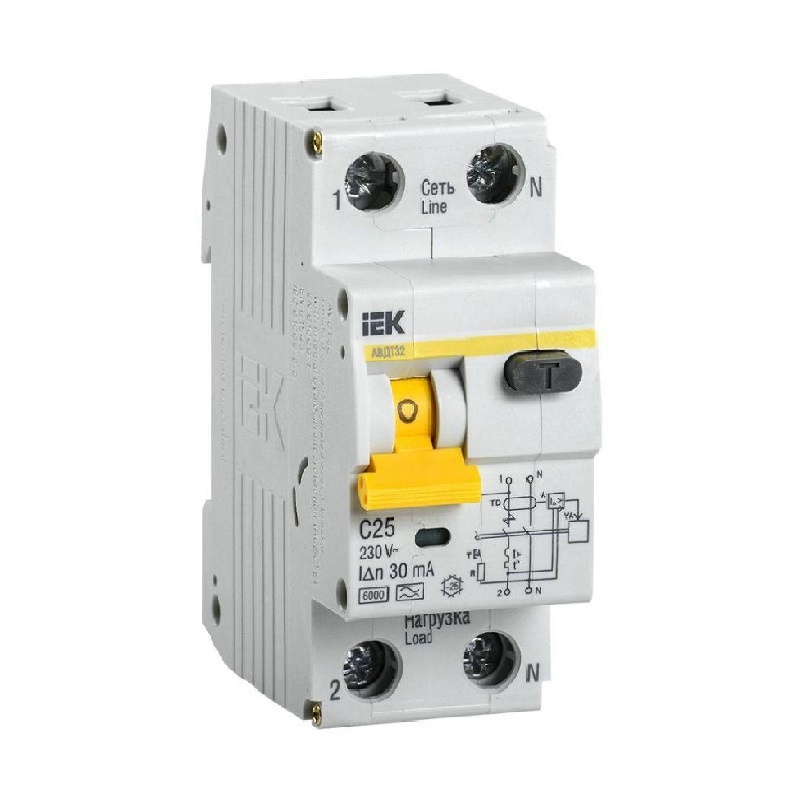 Дифференциальный автомат IEK Karat АВДТ 32 6кА, С 25А, 30мА, тип А, 1P+N. MAD22-5-025-C-30