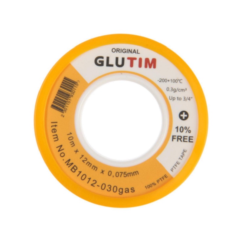 Лента ФУМ для газа малая 12х0,075 мм х 10м, 0.3 г/см3, Эконом, желтая