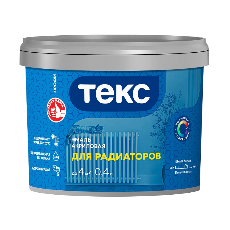 Эмаль акриловая для радиаторов Текс белая полуглянц. (0,4 л)