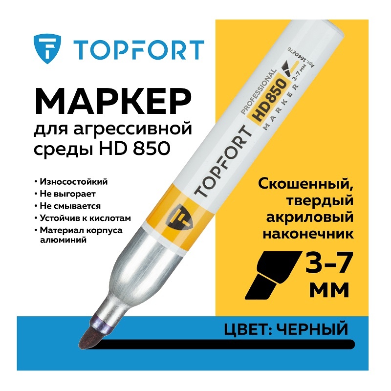 Маркер для агрессивной среды Topfort HD 850 черный 3-7 мм, скош. наконечник в Челябинске