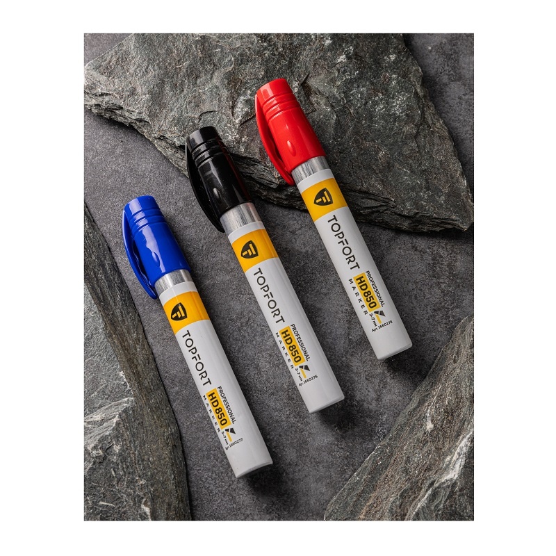HD 850 – предназначен для профессиональной маркировки практически всех материалов, например, стекла, пластика, дерева, резины или металла. Имеет твердый акриловый скошенный наконечник. Может применяться для письма на жирных, пыльных, влажных, грязных поверхностях. Подходит для маркировки в автомобильной промышленности, в нефтегазовом секторе, судоходстве, строительстве, сантехнике, электрике и т. д. Диаметр маркера 16 мм. Температура маркировки: от −15 °С до +100 °С. Температура поверхности: от −5 °С до +40 °С.