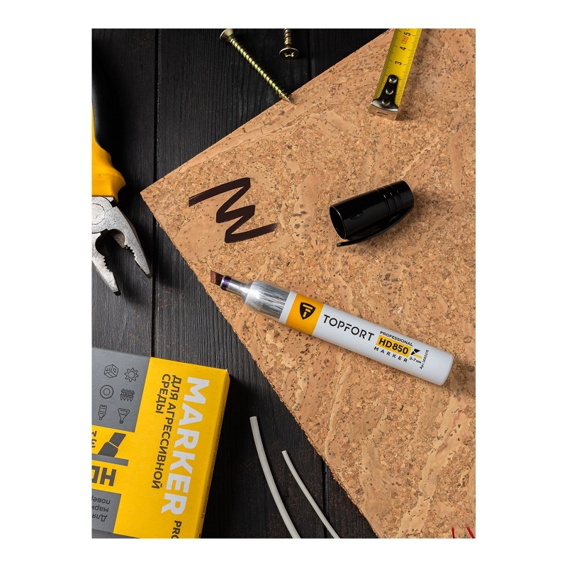 Маркер для агрессивной среды Topfort HD 850 черный 3-7 мм, скош. наконечник
