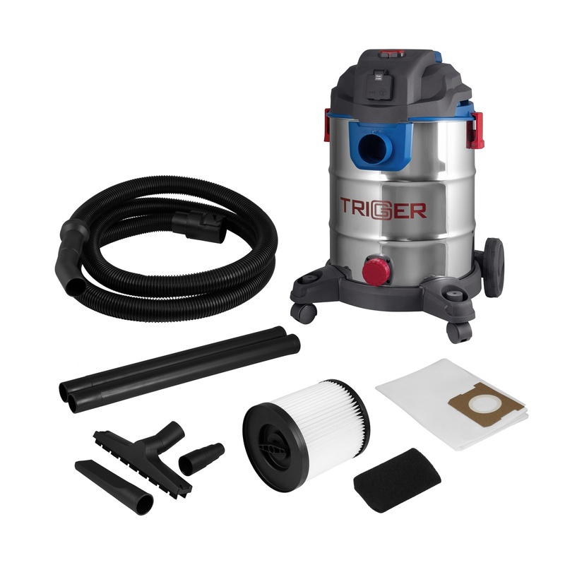 Многофункциональный строительный пылесос Trigger 20701 подходит для сухой и влажной уборки.