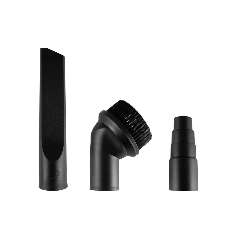 • В комплекте: колеса  2+2 шт, многоразовый НЕРА фильтр, поролоновый фильтр, бумажный пылесборник, шланг, пластиковые трубки 2 шт, переходник для электроинструментов, щелевая насадка, круглая насадка, щетка для пола.