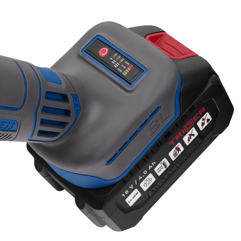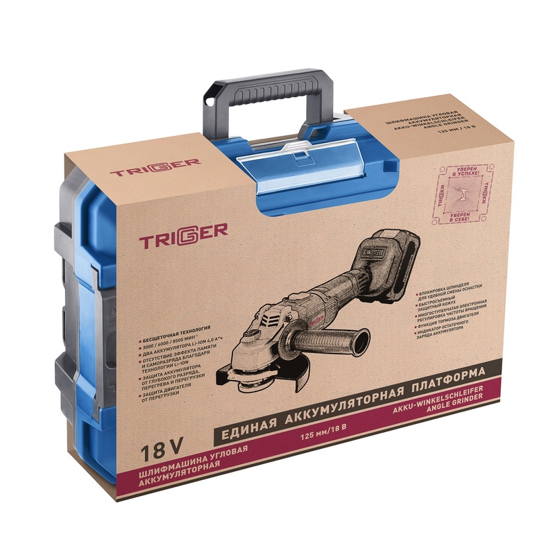 Шлифмашина угловая УШМ аккумуляторная Trigger 20123 ЕАП 18В, Li-ion d=125мм, 2х4Ач, кейс, бесщеточная