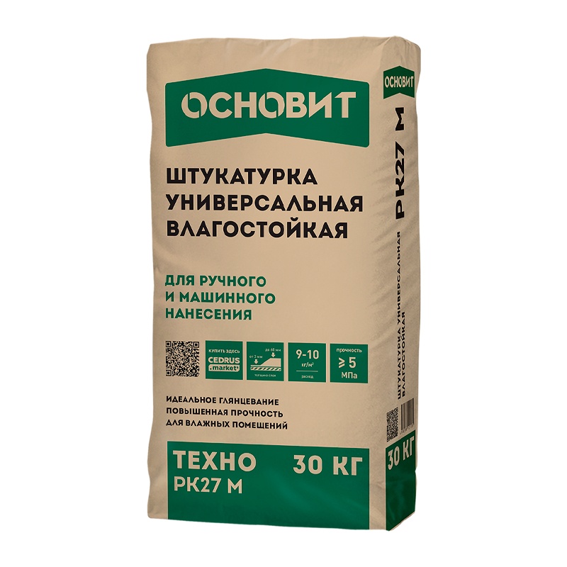 Штукатурка гипсовая Основит Техно PK27 М универсальная влагостойкая, серая 30 кг