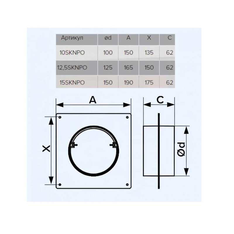 Соединитель для круглых каналов Era 15SKNPO, d=150 мм с обратным клапаном и пластиной 190х175 мм