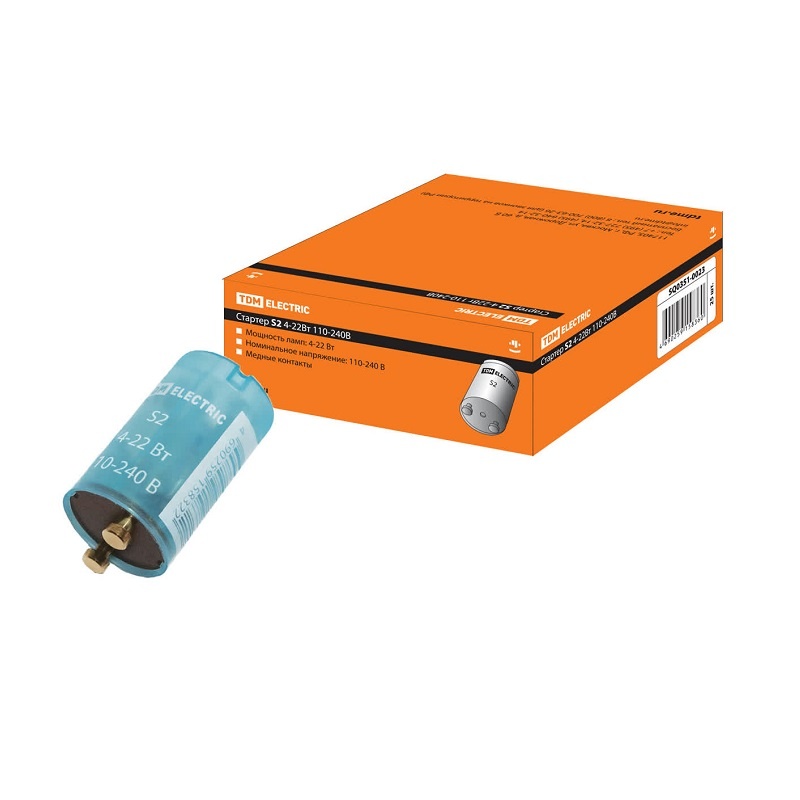 Стартер для запуска люминисцентных ламп 4-22Вт, 110-230В, медные контакты