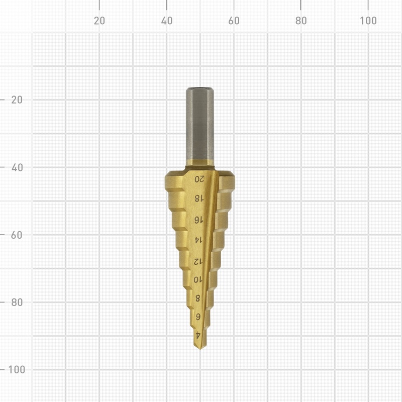Сверло ступенчатое по металу Trigger 74344 Р6М5 TIN d 4-20 мм