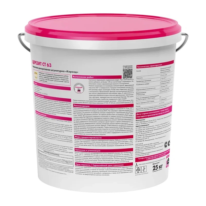 Штукатурка декор. полимерная Церезит CT 63 короед 3,0 мм база, 25 кг
