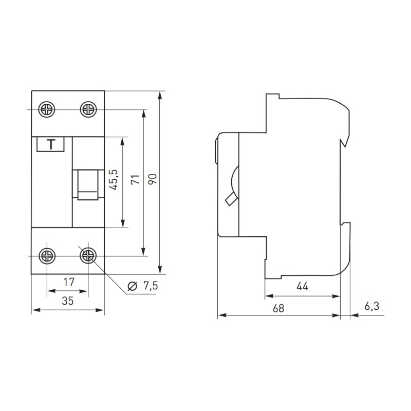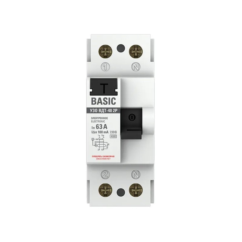 Устройство защитного отключения EKF ВДТ-40 63А, 100мА, тип АС, 2П