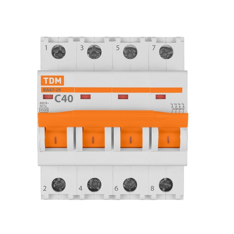 Выключатель автоматический TDM ВА 47-29, 4,5кА, С 40А, 4П