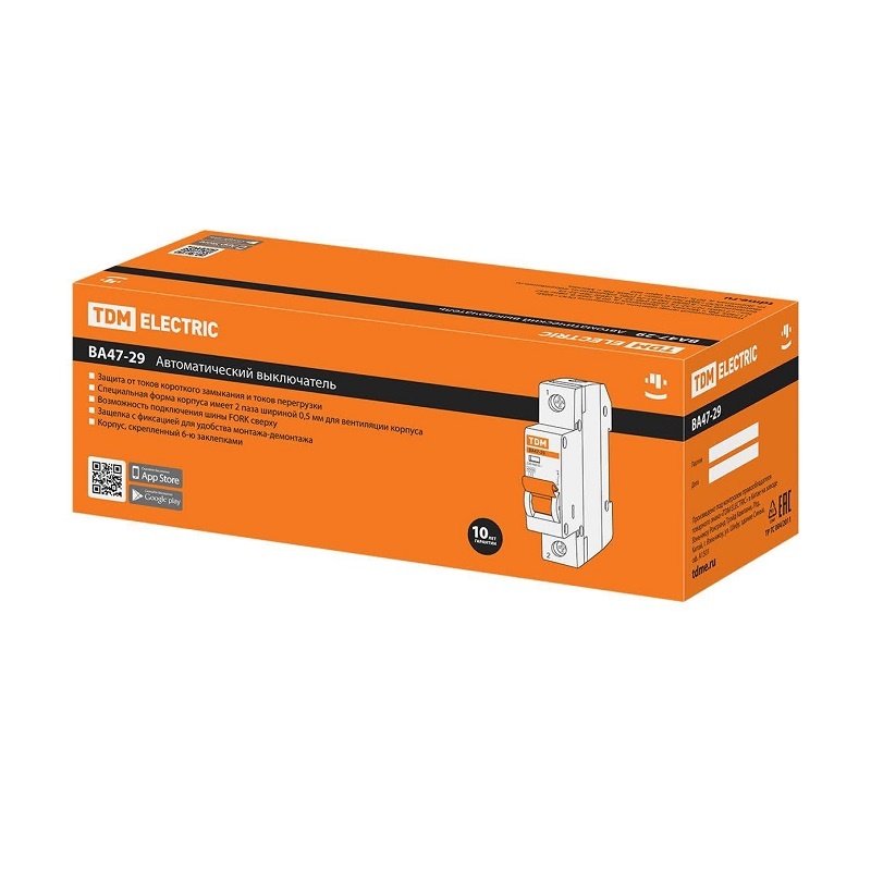 Выключатель автоматический TDM ВА 47-29, 4,5кА, С 10А, 1П