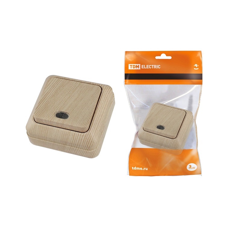 Выключатель о/у Ладога SQ1801-0047, 1 клавиша, с/инд, светлое дерево
